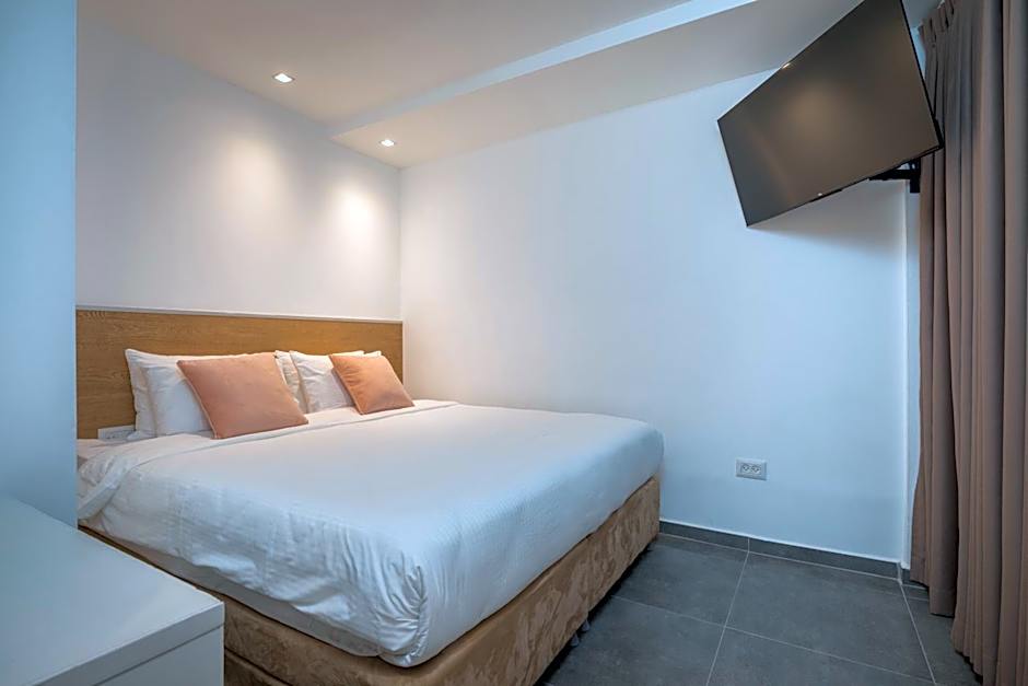 The basic twin room has 2 single beds and is located at the ground floor (1st floor bellow entrance level) with a small shared yard with sitting areas. Also on the first floor above lobby there is seating available.